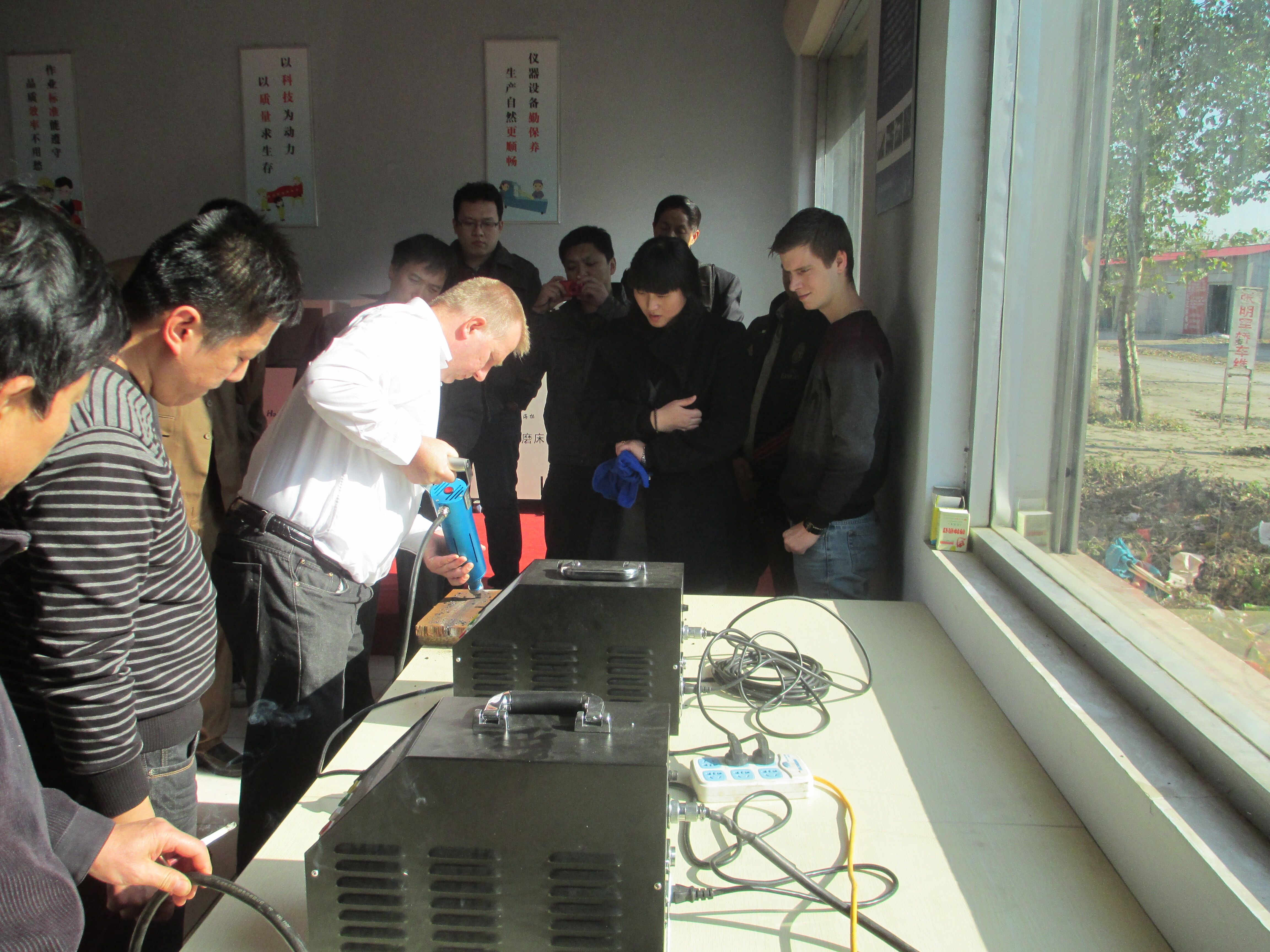 美順帶領客戶試驗超聲沖擊槍